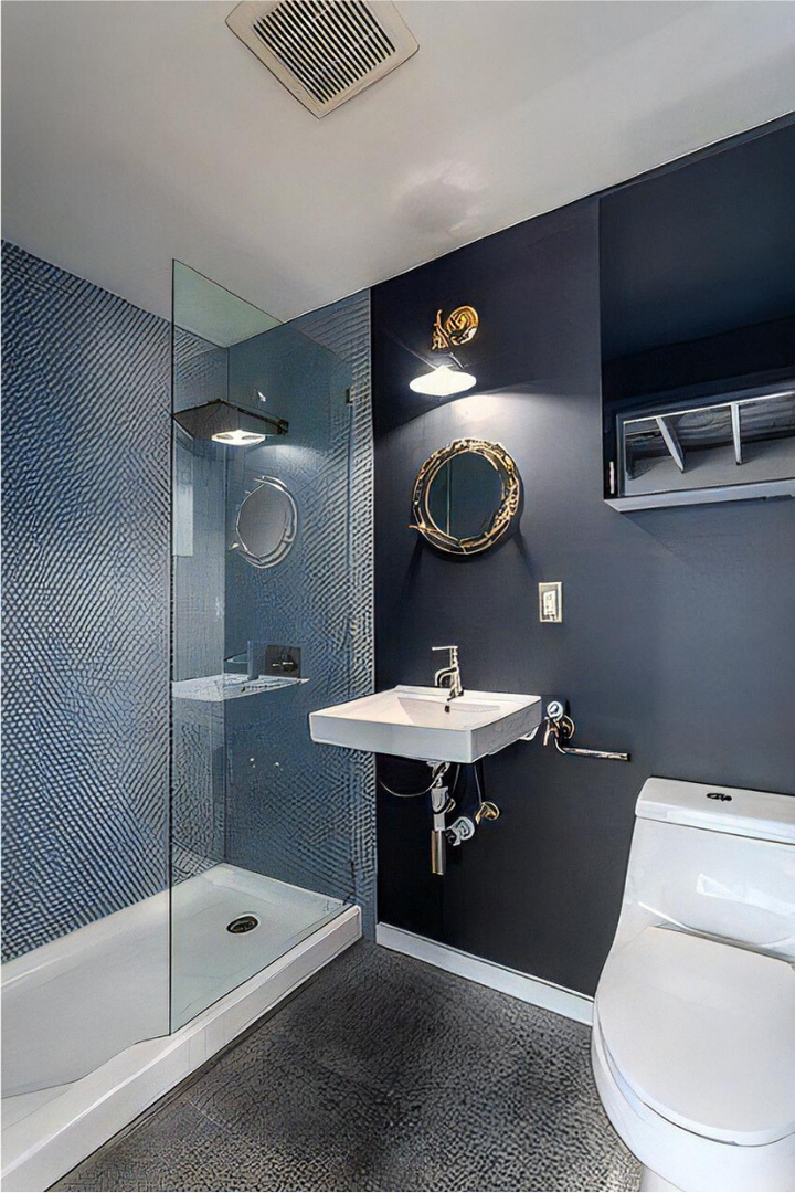 Bathrooms are luxuriously appointed with rain showers, frameless glass panels, and full penny round tiled walls. Brass lighting fixtures and hardware add a touch of elegance throughout the property.