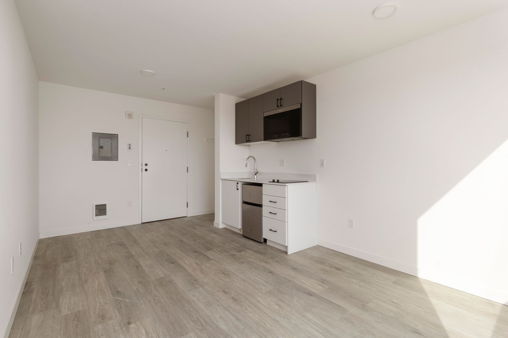 Experience modern living in our brand-new compact studio apartments with LVP flooring and stainless steel appliances. Enjoy the convenience of a convection microwave and quartz counters in a pet-friendly community with great natural light. Our thoughtfully designed floorplans cater to your lifestyle, all at an affordable price with income restrictions.