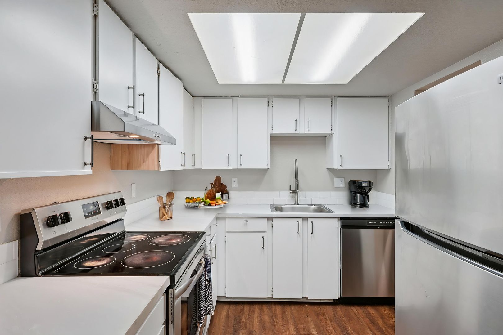 Our spacious townhome style units offer a unique residential feel with room to live and grow. Select homes feature in unit washer and dryers, stainless steel appliances, luxury vinyl plank and carpet flooring, and timeless white shaker cabinetry that brings a clean, modern look to your kitchen.