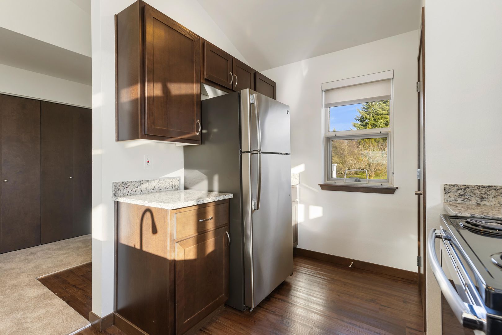 Welcome to Juniper Ridge, a peaceful apartment community tucked into the quiet Woodridge neighborhood of Bellevue. Juniper Ridge features spacious 2- and 3-bedroom homes filled with natural light, complete with private balconies or patios overlooking lush greenery, as well as easy access to I-90 and I-405 and nearby parks, shopping, and everyday essentials only minutes away. Residents enjoy convenient on-site parking, well-maintained grounds, and a quiet atmosphere that’s hard to find this close to the city, and with a few buildings in the community, Juniper Ridge maintains a neighborhood feel that residents love. Whether you're looking for easy access to Bellevue and Seattle or simply want a relaxing place to call home, Juniper Ridge offers a balanced blend of comfort and convenience.