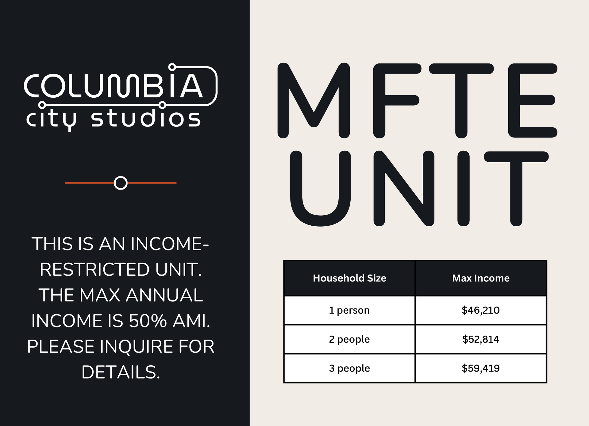 MFTE: This apartment is income-restricted, a single occupant's gross income (before taxes) cannot exceed $48,289, and for two occupants, it cannot exceed $55,191 (50% AMI). We verify by collecting the following and then the city of Seattle verifies it with a special calculation: