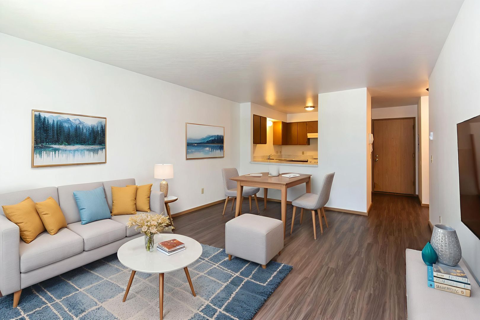 Welcome to Fira Apartments in the heart of Gig Harbor. Our thoughtfully designed apartment homes offer comfort and style, with select units featuring ceiling fans, luxury vinyl plank flooring, and classic wood blinds.