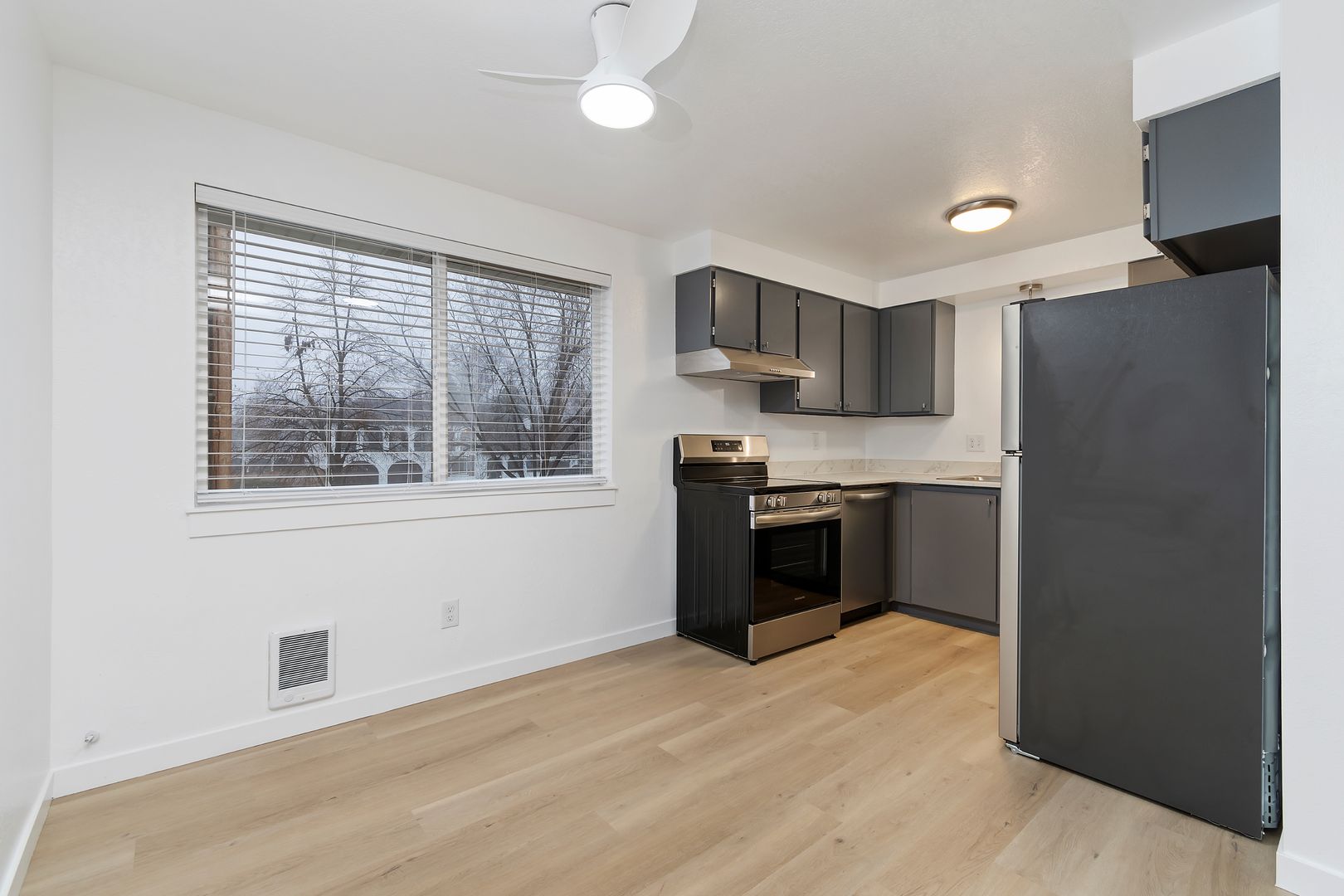 Welcome to your new home! This 1 bedroom apartment features a spacious living room, stainless steel appliances, lots of counter space, and off-street parking. We just finished a full remodel on this unit! Be the first to enjoy it!