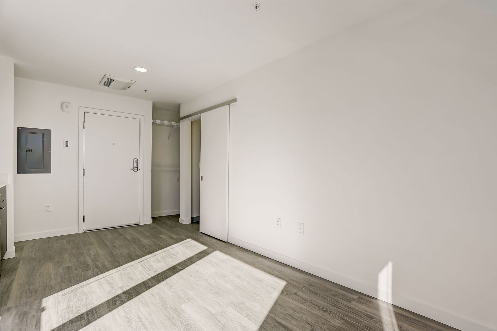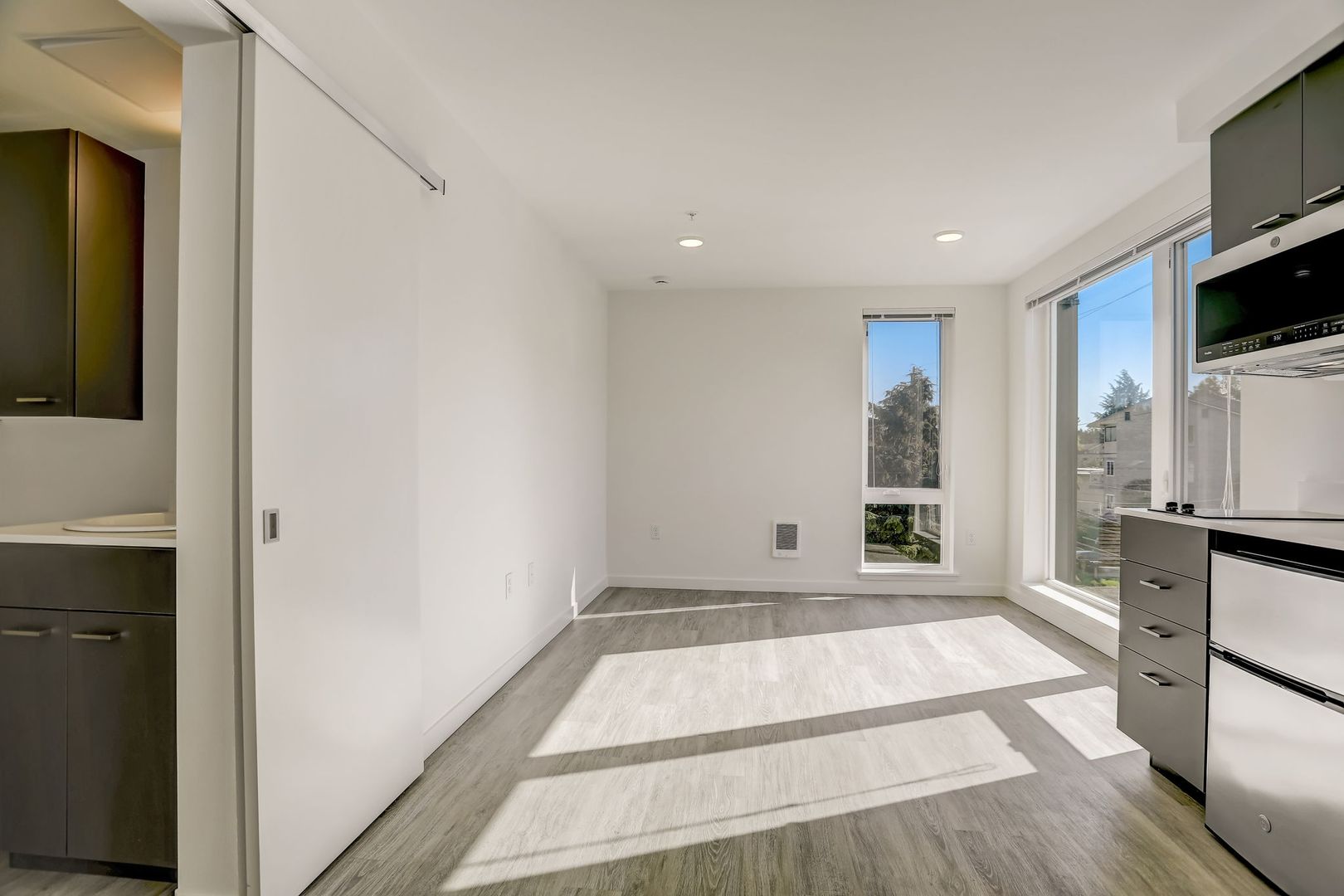 Experience modern living in this brand-new 3rd-floor studio apartment. With sleek finishes and stainless steel appliances, including a built-in two-burner stovetop and convection microwave, this open-concept space offers ample storage and luxury vinyl plank flooring. Enjoy the convenience of a mini fridge and the privacy of a corner unit.